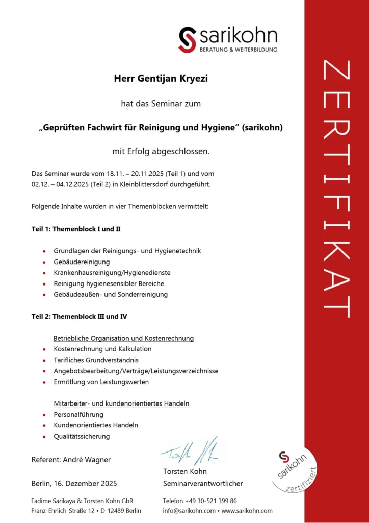 ausführlicher Reinigungsplan, wir